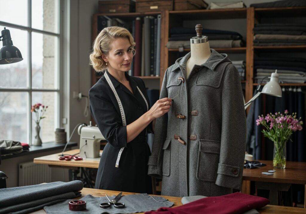 Z czasem budrysówka ewoluowała z czysto utilitariannego stroju w element mody ulicznej i luksusowej. W latach 50. i 60. XX wieku stała się popularna wśród cywilów, dzięki firmom takim jak Gloverall, która wprowadziła cywilne wersje z charakterystycznymi trokami z drewna lub rogu zamiast metalowych guzików. Różnice w nazewnictwie odzwierciedlają regionalne adaptacje: w USA nazywana jest czasem “toggle coat”, podkreślając unikalne zapięcie, podczas gdy w Europie dominuje nazwa dufflecoat. Ta ewolucja wpłynęła na modę męską, inspirując projektantów do reinterpretacji klasycznego kroju w bardziej slim-fit wersjach, co widać w kolekcjach marek jak Burberry czy Ralph Lauren.